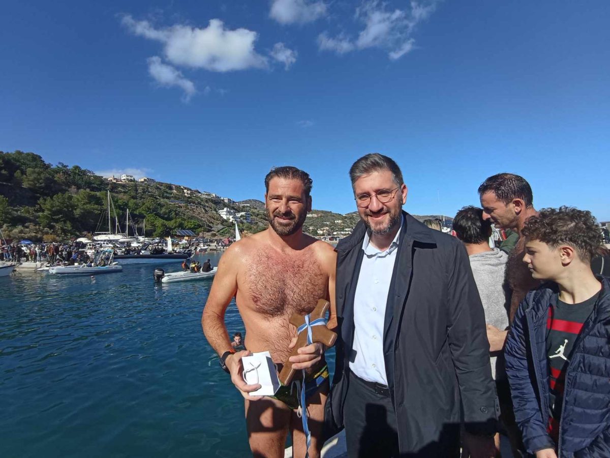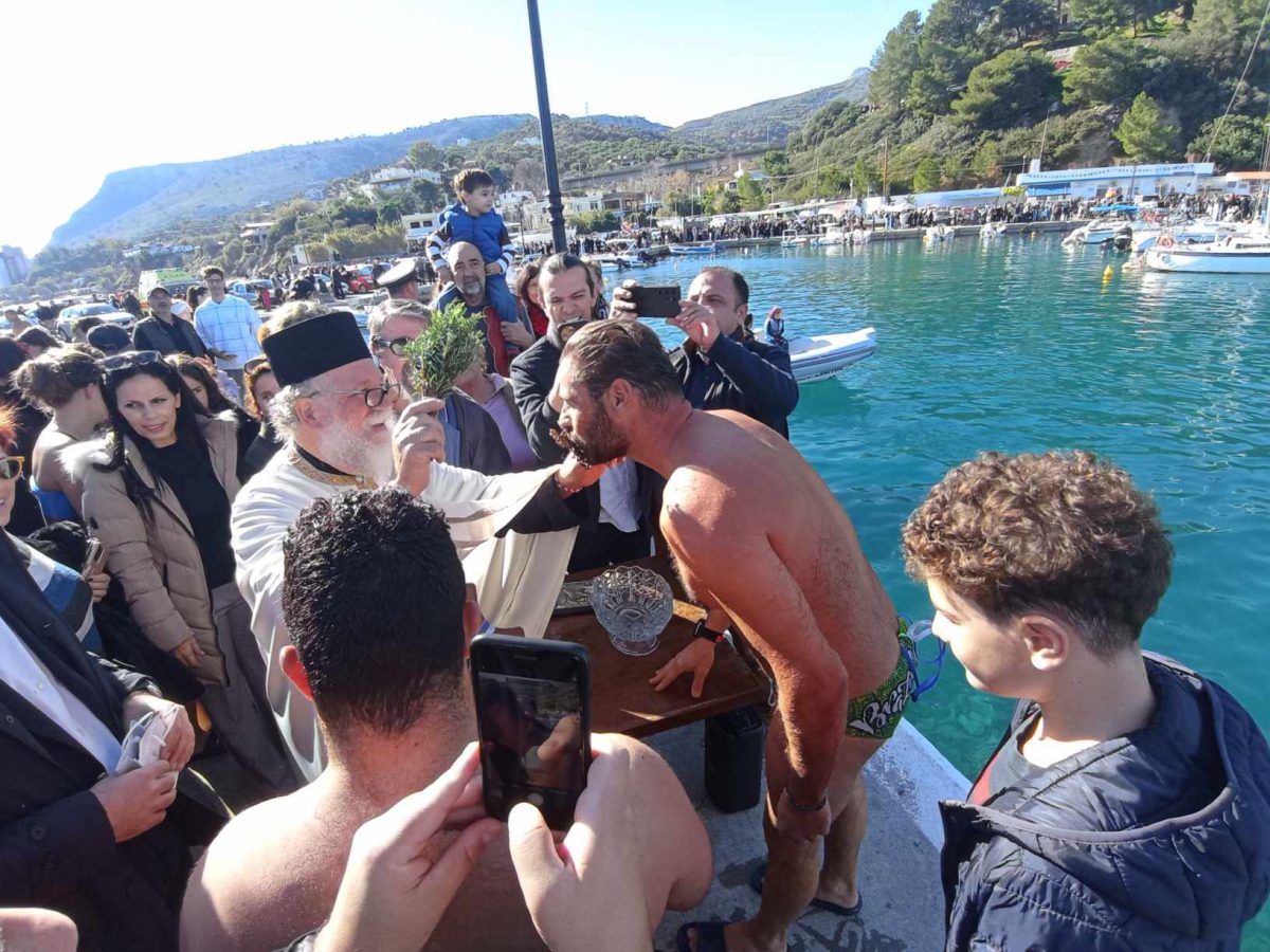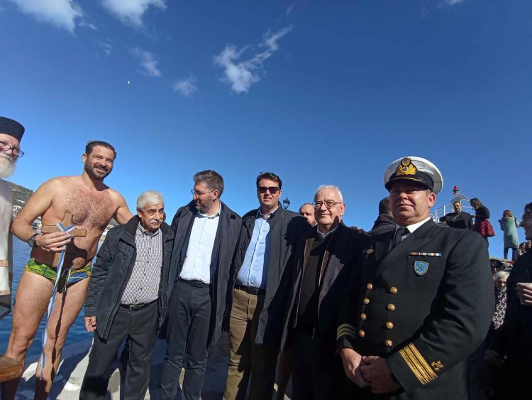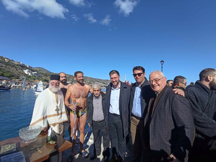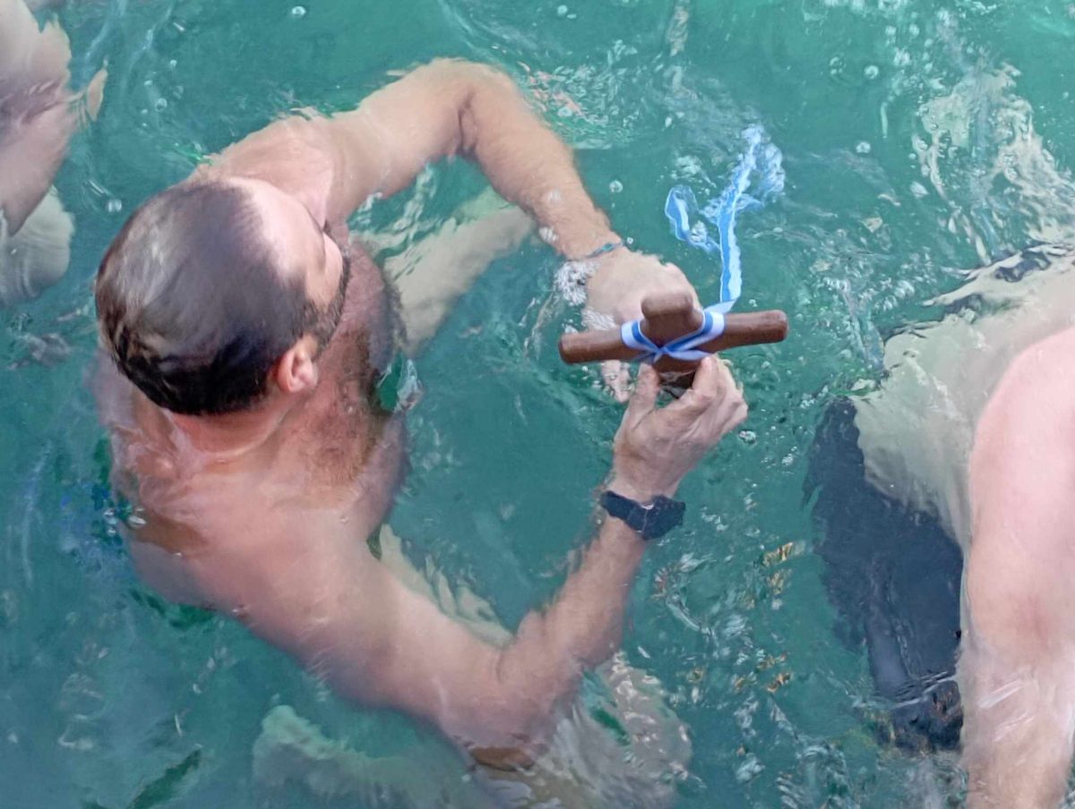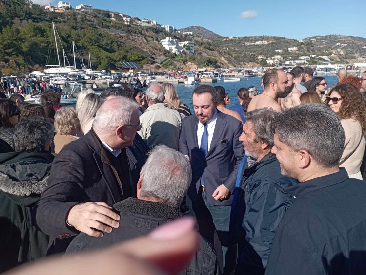 «Καλή χρονιά υγεία πάνω από όλα και όλα θα φτιάξουν», ευχήθηκε με την σειρά του και ο Νικόλαος Σκουλάς που για δεύτερη φορά δοκίμασε την τύχη του και πάλεψε για να πιάσει το σταυρό, καθώς ορίζει το έθιμο και ο συμβολισμός της Βάπτισης του Ιησού.