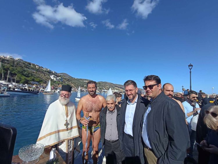Περισσότερο γρήγορος και φυσικά τυχερός ήταν ο 45χρονος Θανάσης Κίτσος που ανέσυρε τον σταυρό από τα παγωμένα νερά του Αλιευτικού καταφυγίου της Παντάνασσας και έλαβε ως δώρο για την πράξη του, ένα χρυσό σταυρό από τα χέρια του δημάρχου Μαλεβιζίου Μενέλαου Μποκέα.