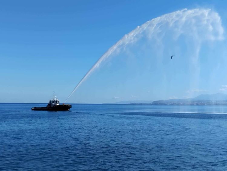 Εντυπωσιακή ήταν και η εικόνα που προσέφερε ο μαλεβιζιώτης Μανόλης Παπαδάκης από την Ροδιά ο οποίος με το ρυμουλκό του την ώρα του καθαγιασμού προσέλκυσε το Λιμανάκι της Παντάνασσας σχηματίζοντας σιντριβάνι μέσα στην θάλασσα ενώ πολλά μικρά σκάφη που έπλεαν μέσα στο λιμανάκι πρόσθεσαν στην μαγευτική εικόνα.