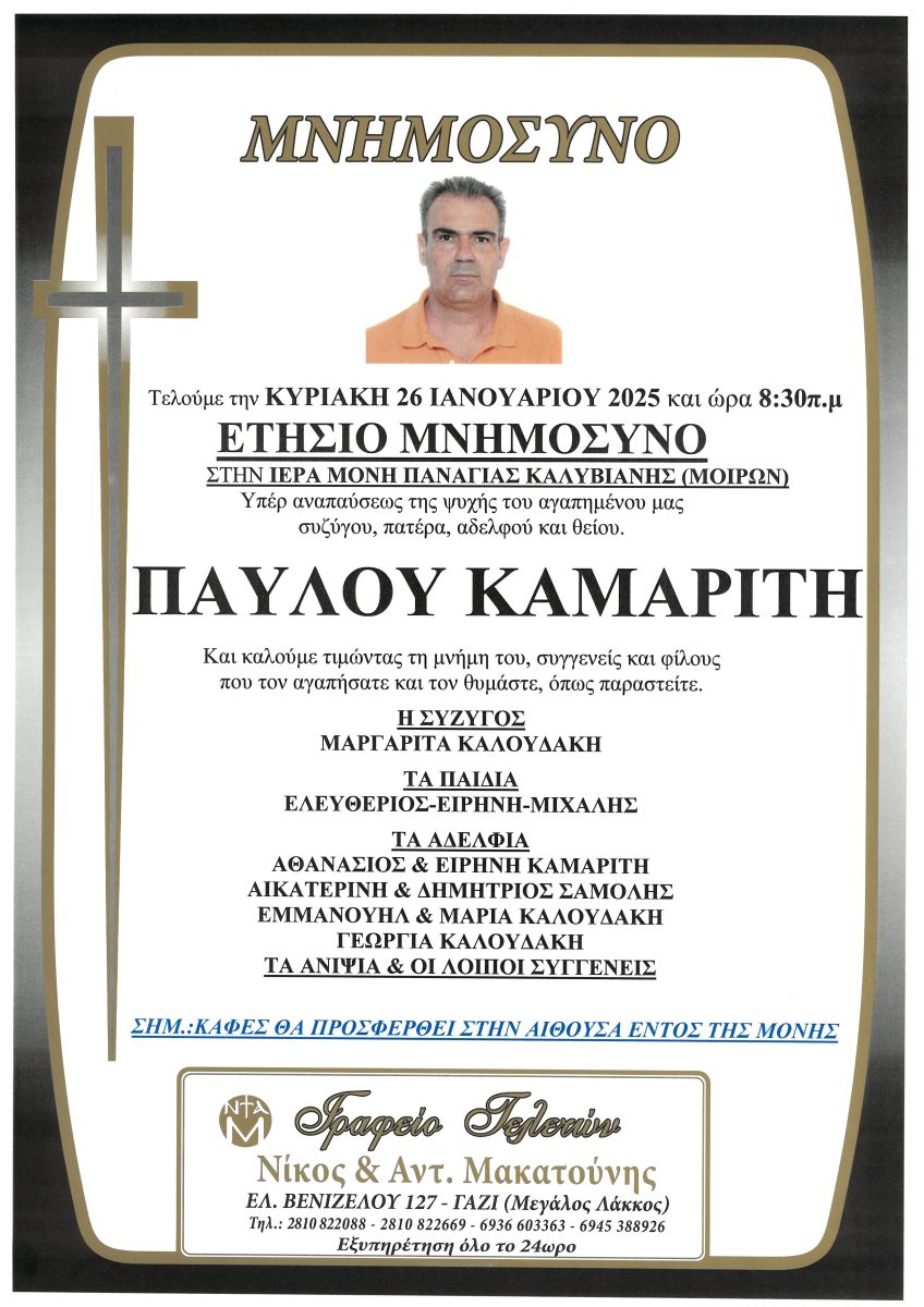 Στις Μοίρες το ετήσιο μνημόσυνο του Παύλου Καμαρίτη