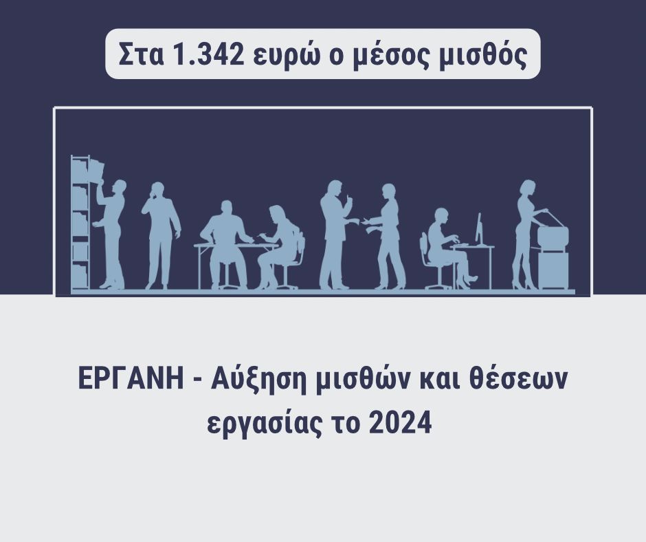 Στα 1.342€ ο μέσος μισθός το 2024 – αύξηση 7,2% από το 2023 και 28,3% από το 2019! Ο μέσος μισθός πλήρους απασχόλησης εκτοξεύτηκε στα 1.470€ (+18%), ξεπερνώντας κάθε προσδοκία.