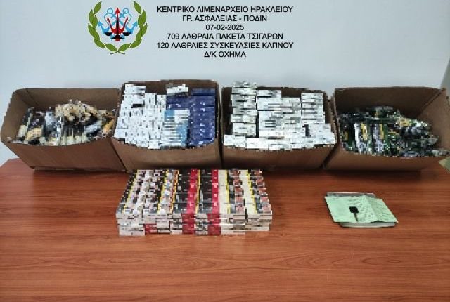 Συγκεκριμένα, σε έλεγχο που διενεργήθηκε στην παραλιακή οδό Νεάρχου Ηρακλείου σε ένα δίκυκλο (Δ/Κ) όχημα, με οδηγό τον 42χρονο, ο οποίος φορούσε κράνος εταιρείας διανομών, εντοπίστηκαν εντός της μπαγκαζιέρας του, εβδομήντα (70) πακέτα με τσιγάρα καθώς και οκτώ (08) συσκευασίες καπνού των 50 γραμμαρίων έκαστη, τα οποία στο σύνολό τους δεν έφεραν την ταινία ειδικού φόρου κατανάλωσης. Στη συνέχεια, διενεργήθηκε νόμιμη κατ΄οίκον έρευνα και βρέθηκαν επιπλέον εξακόσια τριάντα εννέα (639) πακέτα τσιγάρων καθώς και εκατόν δώδεκα (112) συσκευασίες καπνού που δεν έφεραν την ταινία ειδικού φόρου κατανάλωσης.