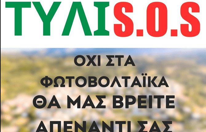 Υλοποιώντας την πρώτη απόφαση του ψηφίσματος αντίδρασης κατά της φωτοβολταϊκής μονάδας στην Τύλισο, η Επιτροπή Αγώνα Φορέων και Ενεργών Πολιτών Τυλίσου συγκεντρώνει υπογραφές μέσω του ιστότοπου Change.org.