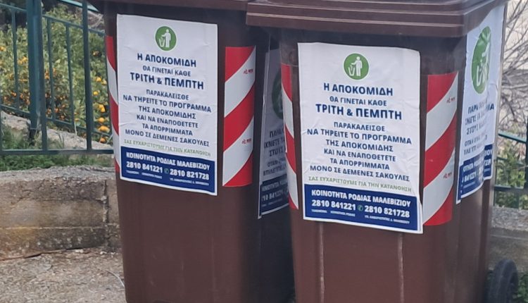 Παρακαλούνται όλοι οι κάτοικοι που θα χρησιμοποιούν τους μικρούς κάδους να τηρούν τις οδηγίες που αναφέρουν ότι η αποκομιδή θα γίνεται κάθε Τρίτη και Πέμπτη με το μήνυμα: