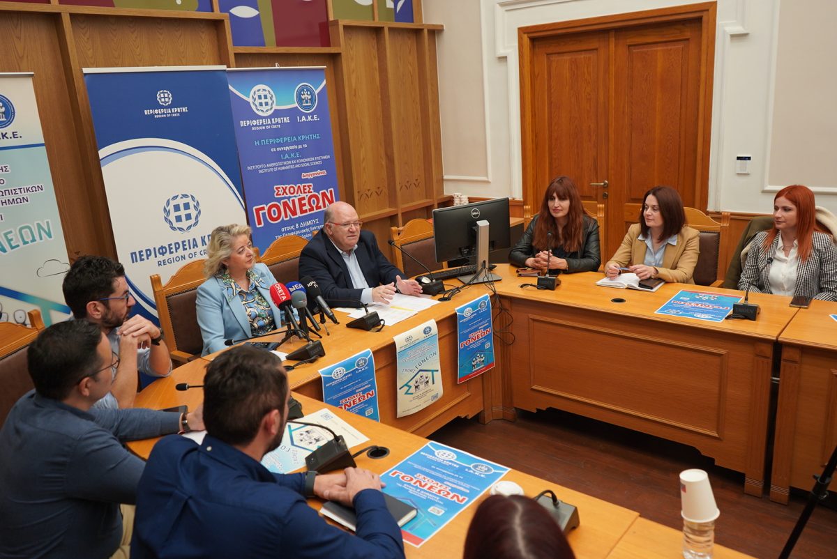 Η Περιφέρεια Κρήτης απαντώντας στις ανάγκες της τοπικής κοινωνίας και της σχολικής κοινότητας οργανώνει σε συνεργασία με το Ινστιτούτο Ανθρωπιστικών και Κοινωνικών Επιστημών (ΙΑΚΕ) Σχολές Γονέων, πιλοτικά, και στους 8 Δήμους της Περιφερειακής Ενότητας Ηρακλείου. Πρόκειται για μια πρωτοβουλία με βαθύ κοινωνικό και εκπαιδευτικό αντίκτυπο, που στοχεύει στην ενδυνάμωση και στήριξη των γονέων, αναγνωρίζοντας τη σημασία του ρόλου τους στη διαμόρφωση του μέλλοντος των παιδιών και της κοινωνίας.