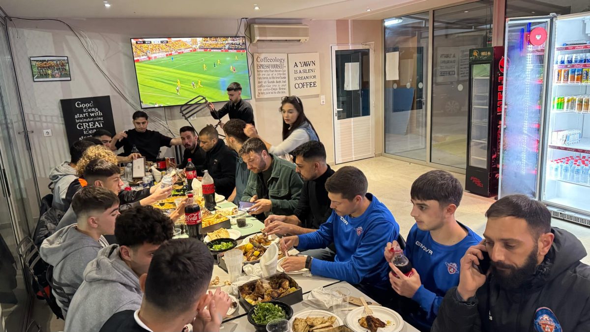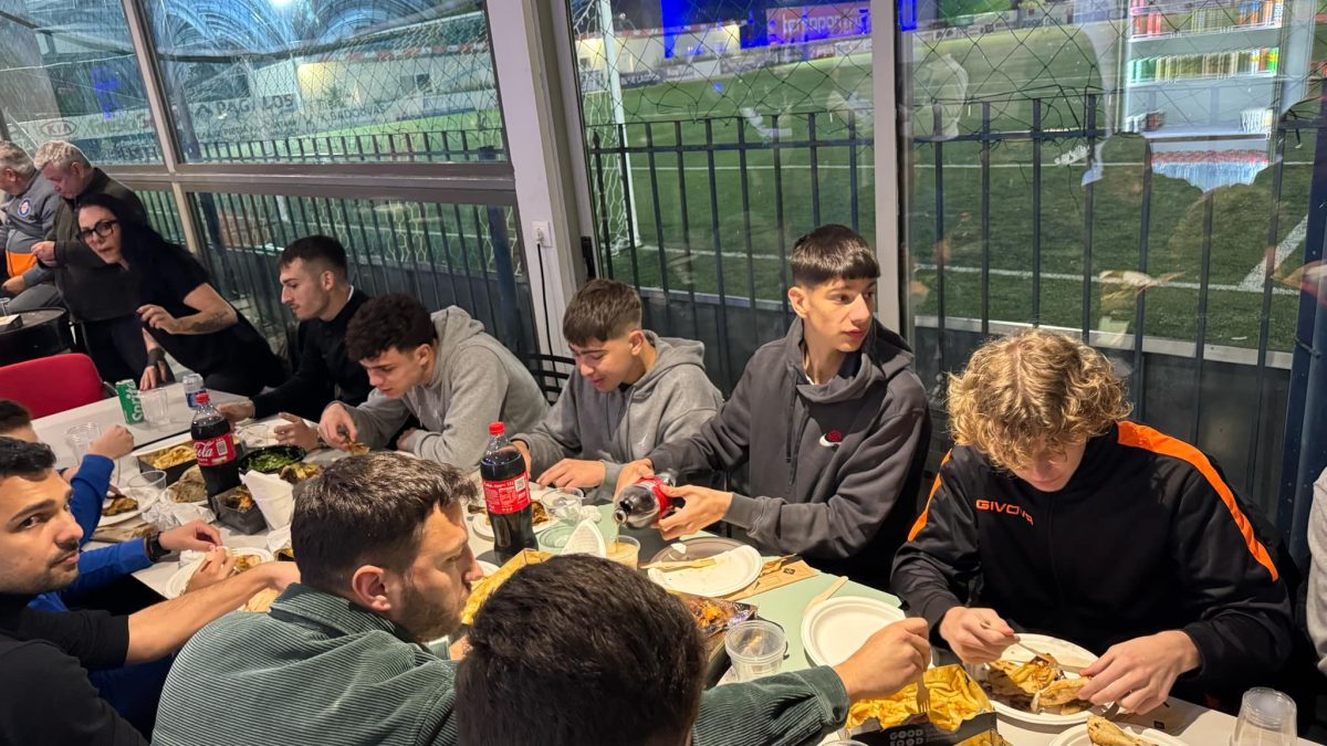 Ο μπουφές ήταν πλούσιος και τον τίμησαν δεόντως όλοι οι παίκτες, με το κλίμα να είναι ζεστό και τα πειράγματα μεταξύ προπονητή και ποδοσφαιριστών να δίνουν και να παίρνουν.