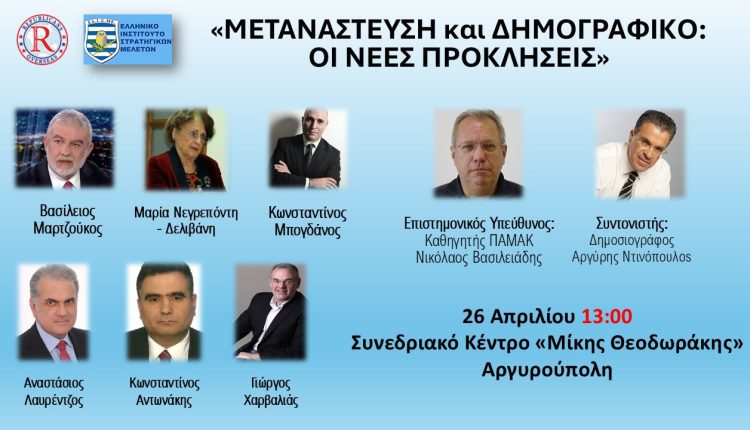 Ημερίδα διοργανώνουν τα παραρτήματα Ελλάδος και Ισραήλ του Ρεπουμπλικανικού Κόμματος των ΗΠΑ και το Ελληνικό Ινστιτούτο Στρατηγικών Μελετών (ΕΛΙΣΜΕ), στις 26 Απριλίου 2025, στο Συνεδριακό Κέντρο «Μίκης Θεοδωράκης» Δήμου Ελληνικού-Αργυρούπολης (13:00-18:30).
