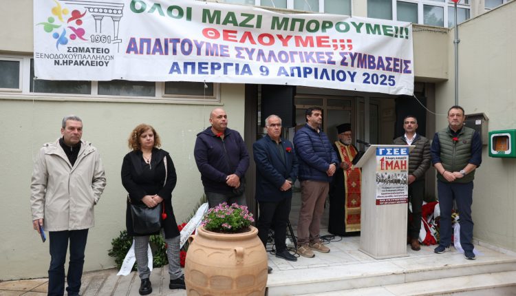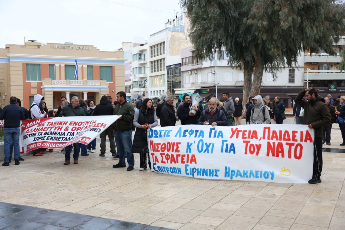 Έξω από το Εργατικό Κέντρο Ηρακλείου συγκεντρώθηκαν εργαζόμενοι, άνεργοι και συνταξιούχοι συμμετέχοντας στην απεργία και την πρωτομαγιάτικη συγκέντρωση.