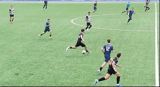 Στο πρώτο μέρος το σχολείο του Γαζίου διατήρησε την υπεροχή, είχε χαμένες ευκαιρίες με τους Δάρλα, Τσελεγγίδη, Σιτμανίδη και τελικά πήγε στα αποδυτήρια προηγούμενο με 2-1.