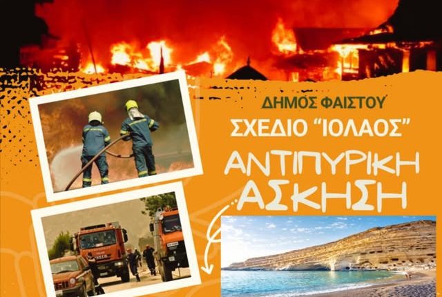 Η διεξαγωγή μεγάλης κλίμακας αντιπυρικής άσκησης προσομοίωσης εκκένωσης του οικισμού (όπου φιλοξενείται κάθε χρόνο ένα Φεστιβάλ με μεγάλη προσέλευση κόσμου) θα γίνει, από τον Δήμο Φαιστού και την  Υπηρεσία Πολιτικής Προστασίας, στο πλαίσιο της προετοιμασίας για την αντιπυρική περίοδο και την ενίσχυση του επιπέδου ετοιμότητας όλων των εμπλεκόμενων φορέων.