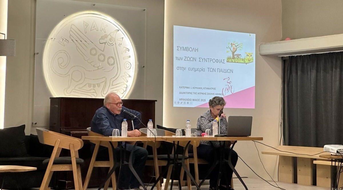 Με επιτυχία πραγματοποιήθηκε η ομιλία «Η συμβολή των ζώων στην ευημερία των παιδιών» από την κτηνίατρο Δρ. Κατερίνα Λουκάκη στο Πολύκεντρο του Δήμου Ηρακλείου στο πλαίσιο του κύκλου ομιλιών «Κοινωνία και Ζώα» που διοργανώνει η Αντιδημαρχία Πολιτισμού του Δήμου Ηρακλείου.