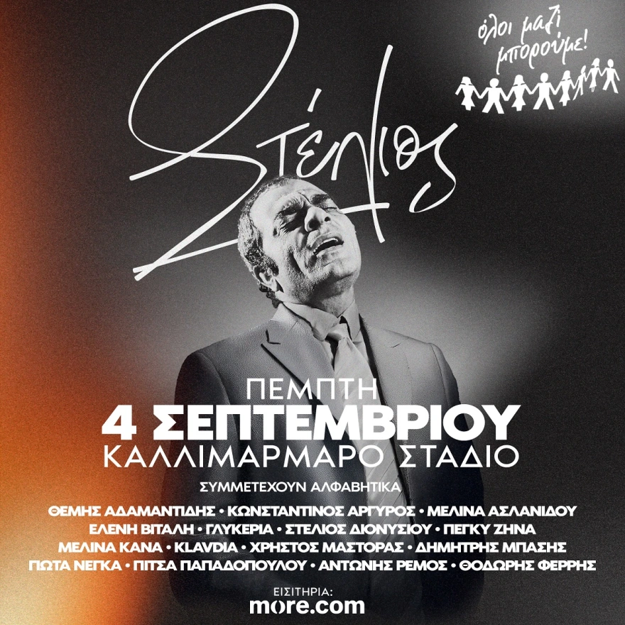 Την Πέμπτη 4 Σεπτεμβρίου 2025, θα πραγματοποιηθεί στο Καλλιμάρμαρο, η μεγάλη συναυλία του «Όλοι Μαζί Μπορούμε» για τον Στέλιο Καζαντζίδη.