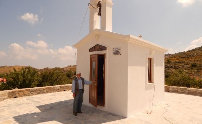“Ήταν μια ηλιόλουστη ημέρα του Νοέμβρη του 1998.Είχαμε ολοκληρώσει τον καθαρισμό και την άροση του χώρου, ανατολικά ,βόρεια και νότια της εκκλησίας, έχομε ανοίξει τους λάκκους για την φύτευση των δέντρων και πρωί -πρωί ξεκινήσαμε εγώ και η σύζυγος μου και μεταβήκαμε στο Ηράκλειο για την παραλαβή των προς φύτευση δέντρων και κατά τις μεσημεριανές ώρες ήμαστε εδώ και αρχίσαμε την εργασία του φυτέματος.