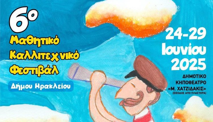 Από τις 24 έως τις 29 Ιουνίου 2025 θα πραγματοποιηθεί φέτος το 6ο Μαθητικό Καλλιτεχνικό Φεστιβάλ του Δήμου Ηρακλείου που διοργανώνει η Αντιδημαρχία Παιδείας σε συνεργασία με τη Διεύθυνση Δευτεροβάθμιας Εκπαίδευσης Ηρακλείου.