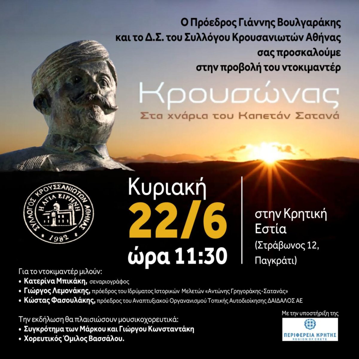 Στην εκδήλωση θα προβληθεί το ντοκιμαντέρ “Κρουσώνας: Στα χνάρια του καπετάν Σατανά”