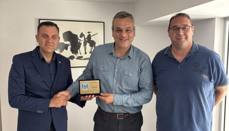 Στο τέλος της συνάντησης, η οποία πραγματοποιήθηκε τη Δευτέρα 16/6, οι εκπρόσωποι της Ένωσης πρόσφεραν στον Χάρη Μαμουλάκη αναμνηστική πλακέτα τιμής ένεκεν.