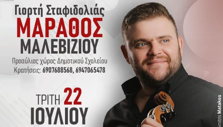 Η καθιερωμένη Γιορτή Σταφιδολιάς διοργανώνεται και φέτος από τον Πολιτιστικό Σύλλογο Μαράθου, την Τρίτη 22 Ιουλίου 2025.