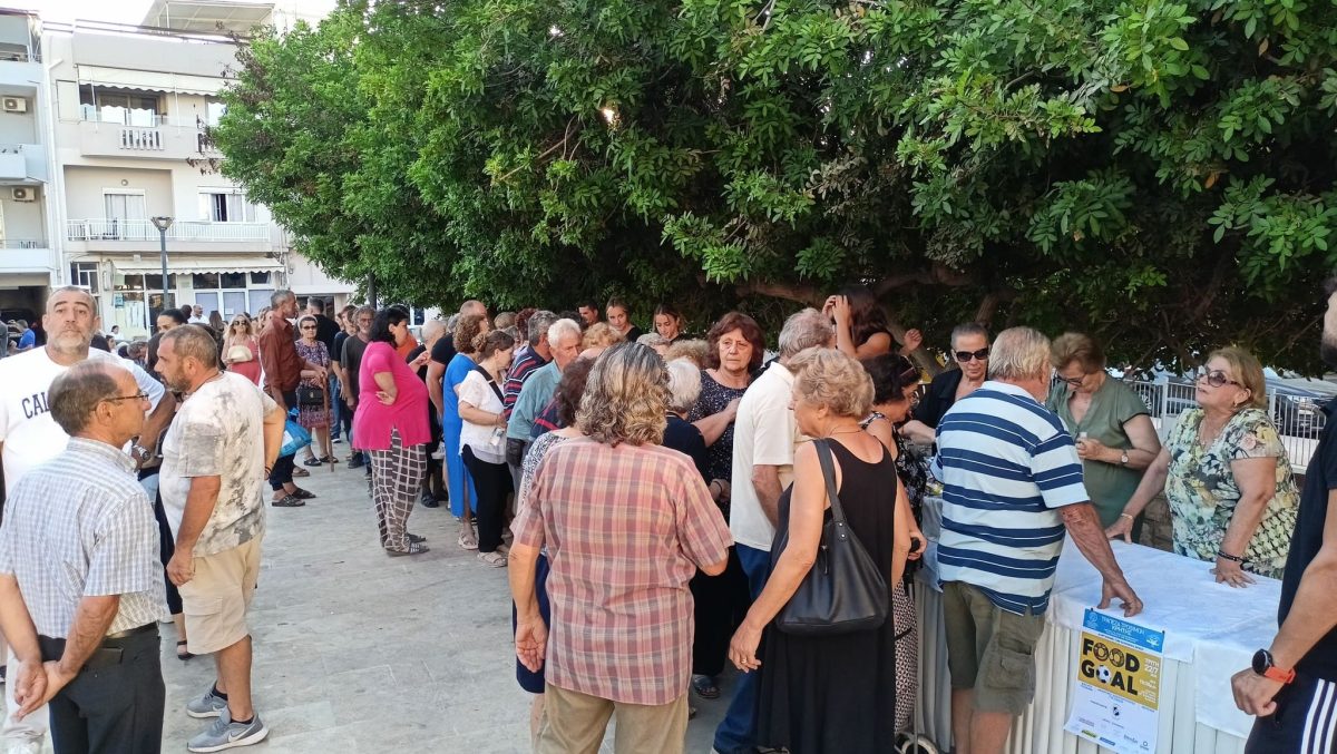 Μήνυμα προσφοράς και αλληλεγγύης έδωσαν η Τράπεζα Τροφίμων Κρήτης και ο «Σύνδεσμος Μελών Γυναικείων Σωματείων Ηρακλείου και Ν. Ηρακλείου» υπό τη διαχειριστική ευθύνη του οποίου λειτουργεί, στη διάρκεια της εξαιρετικά επιτυχημένης κοινωνικής δράσης με τίτλο «Food Goal» που διοργάνωσαν την Τρίτη 22 Ιουλίου 2025 στην καρδιά των Καμινίων, στον αύλειο χώρο του Ι.Ν. Αγίας Βαρβάρας.