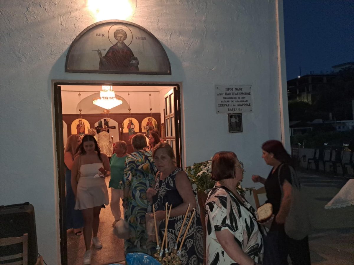 Με κατάνυξη και παρουσία πλήθους πιστών τελέστηκε ο Εσπερινός στο εκκλησάκι του Αγίου Παντελεήμονα από τον εφημέριο Ροδιάς πατήρ Γεώργιο Δαμιανάκη στον παραθαλάσσιο οικισμό του Παλαιοκάστρου.