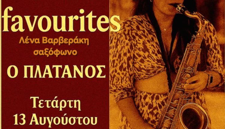 Την Τετάρτη 13 Αυγούστου, στις 21:00 στο Café – Restaurant «Πλάτανος» θα βρίσκεται η Λένα Βαρβεράκη, το σαξόφωνό της με Backing tracks και τα «Lena’s favourites».