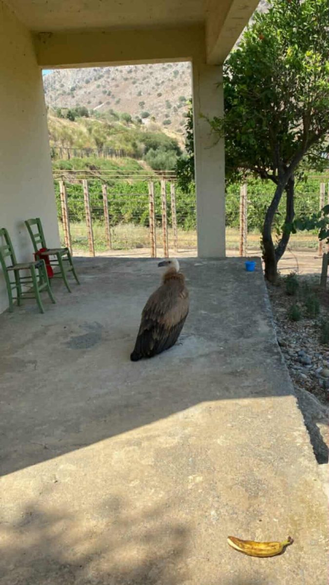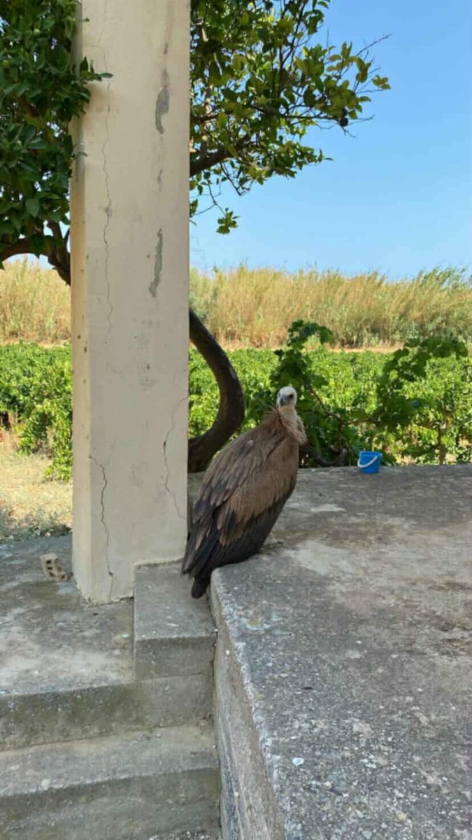 Ένας τραυματισμένος γυπαετός εντοπίστηκε τις πρωινές ώρες σε αυλή σπιτιού, που βρίσκεται ανάμεσα στο γήπεδο του Αλμυρού και την παλιά χωματερή του Σκαφιδαρά.