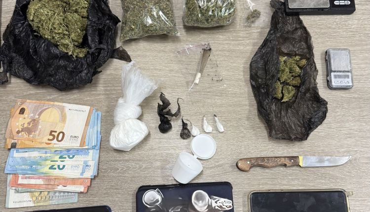 Κατασχέθηκαν περισσότερα από -57- γραμμάρια κοκαΐνης και -146- γραμμάρια κάνναβης, -2- ζυγαριές ακριβείας και το χρηματικό ποσό των -595- ευρώ