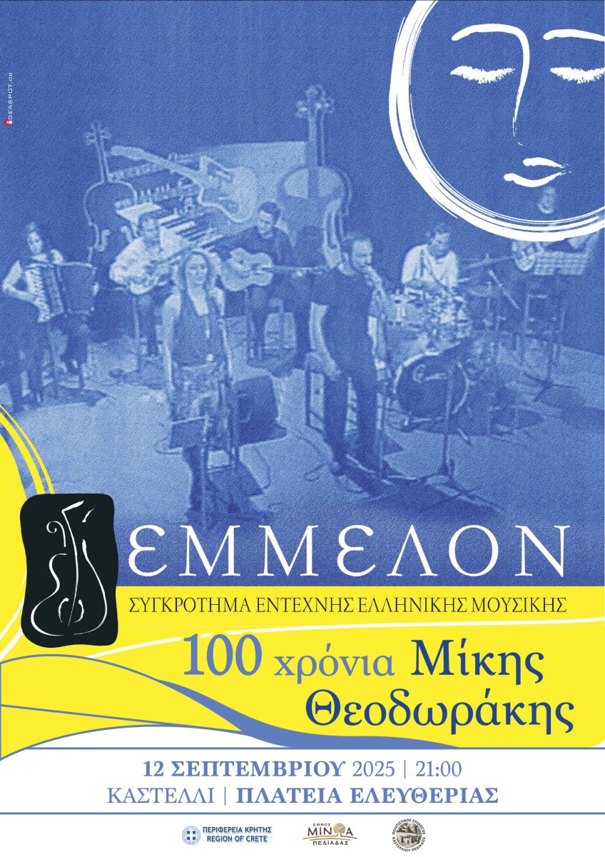 Μια μοναδική συναυλία προς τιμήν του αείμνηστου Μίκη Θεοδωράκη, με αφορμή τη συμπλήρωση 100 χρόνων από τη γέννηση του παγκόσμιου Έλληνα, ο οποίος  με τη μουσική του ένωσε γενιές και λαούς, θα πραγματοποιηθεί την Παρασκευή 12 Σεπτεμβρίου 2025, στις 21:00, στην Πλατεία Ελευθερίας στο Καστέλλι του Δήμου Μινώα Πεδιάδας .
