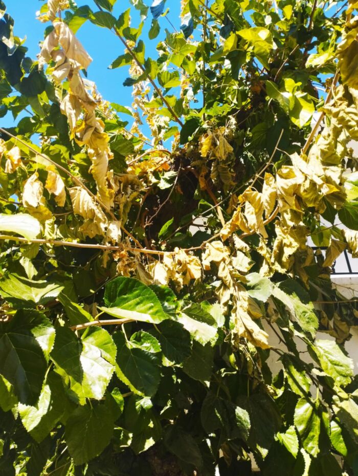 Τα δέντρα που φαίνεται να αργοσβήνουν, εκτείνονται στο πεζοδρόμιο, από το παντοπωλείο του “Μπαντουβά” μέχρι την είσοδο του Μεϊντανιού. Πρόκειται για δυο καρυδιές και πέντε μουρνιές που αν δεν παρέμβουμε άμεσα ώστε να τα σώσουμε, το επόμενο καλοκαίρι θα θυμίζουν δέντρα μετά από πυρκαγιά, χωρίς τα φύλλα τους και την ομορφιά που δίνουν στον περιβάλλοντα χώρο. Επίσης δεν είναι τα μόνα δέντρα και η μοναδική περιοχή το Μεϊντάνι που αντιμετωπίζει πρόβλημα, αλλά σε εκείνο το σημείο η κατάσταση απέχει ελάχιστα από το να γίνει μη αναστρέψιμη.