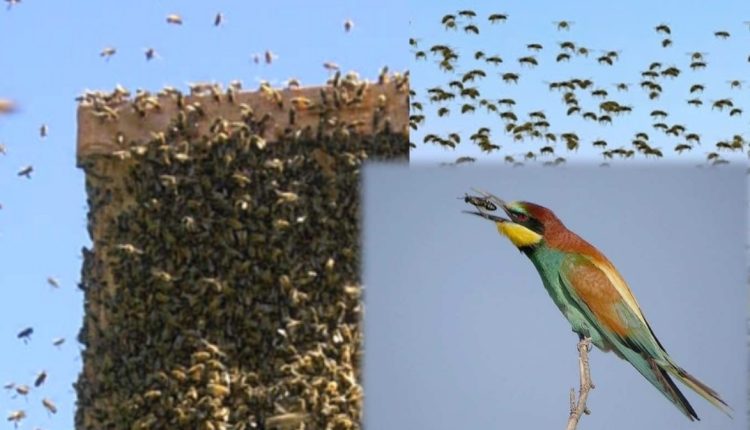 Όπως φαίνεται στο βίντεο που δημοσιεύουμε σε σμήνη οι μελισσοφάδοι ή μέροπες (Merops apiaster είναι η επιστημονική τους ονομασία) επιτίθενται μαζικά σε κυψέλες με μελίσσια μειώνοντας σημαντικά τον πληθυσμό των εργατριών.