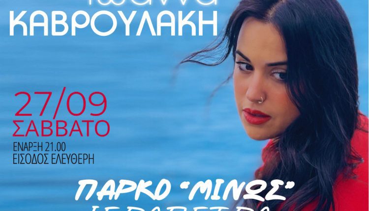 Στο πλαίσιο της παράλληλης δράσης του 5ου Φεστιβάλ Κρήτης «Γυναίκες», που υλοποιείται για 2η συνεχόμενη χρονιά, με την υποστήριξη του Αυτοτελούς Γραφείου Ισότητας της Περιφέρειας Κρήτης, πραγματοποιούνται οι συναυλίες της Ιωάννας Καβρουλάκη, το Σάββατο, 27 Σεπτεμβρίου, στο Πάρκο «Μίνως», στην Ιεράπετρα, στις 9:00μ.μ. και την Κυριακή, 28 Σεπτεμβρίου 2025, στην Κεντρική Πλατεία της Σητείας, στις 9:00μ.μ., με ελεύθερη είσοδο για το κοινό.