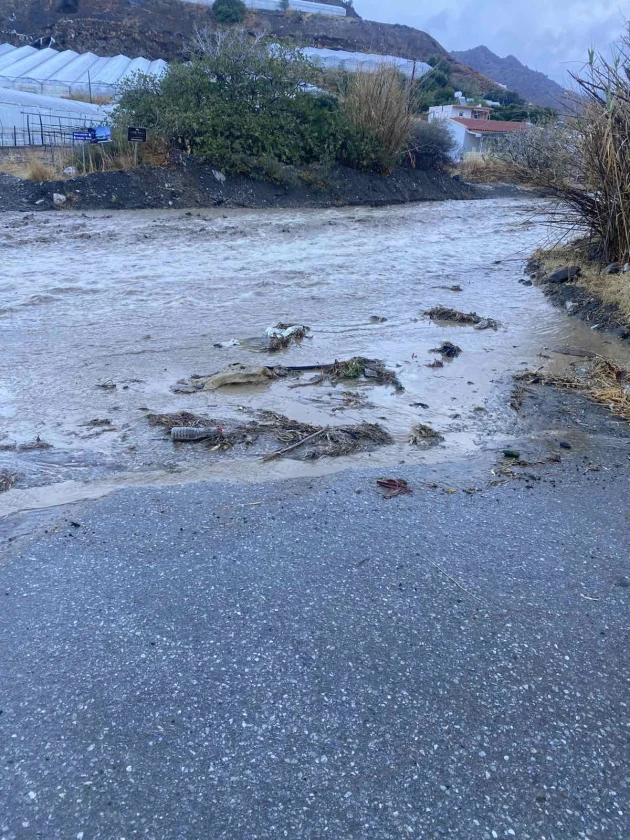 Επίσης στο χωριό Αντισκάρι υπήρξε ζημιά στον κεντρικό δρόμο λόγω της ισχυρής βροχής που σημειώθηκε το πρωί. Και στον Δήμο Φαιστού παρατηρήθηκαν όμως προβλήματα στους αγροτικούς δρόμους, ενώ τρία υπόγεια πλημμύρισαν στο Τυμπάκι.