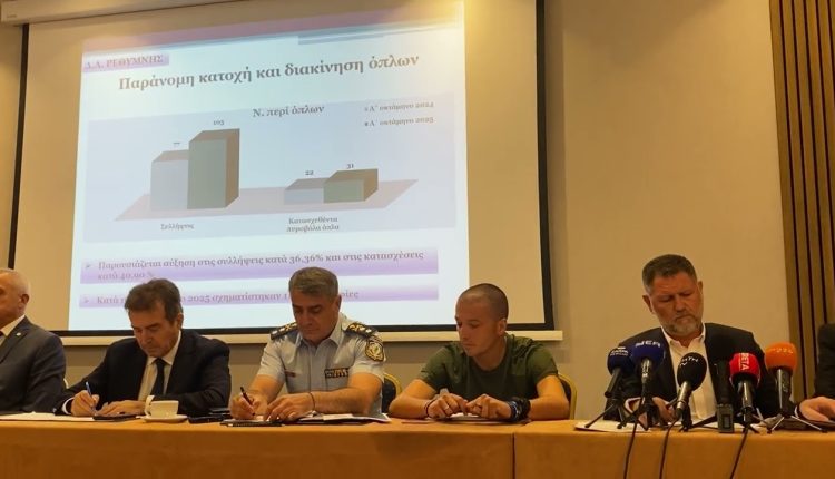 Την παρουσίαση των αποτελεσμάτων των δράσεων της Δ.Α.Ο.Ε., παρουσίασαν ο Επικεφαλής της Διεύθυνσης Αντιμετώπισης Οργανωμένου Εγκλήματος, Υποστράτηγος Φώτης Ντουίτσης, ο Υποδιευθυντής της Δ.Α.Ο.Ε., Αστυνομικός Διευθυντής Σπύρος Τσαρδάκας και ο Επικεφαλής του Τμήματος Αντιμετώπισης Οργανωμένου Εγκλήματος Κρήτης, Αστυνομικός Υποδιευθυντής Μανώλης Πιπεράκης (παρουσίαση)