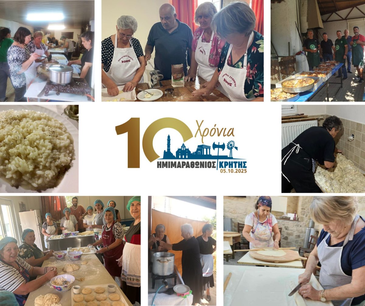 Share FacebookTwitter Ο Αθλητικός Σύλλογος Υγείας Αρκαλοχωρίου με πολλά Κρητικά εδέσματα σε έναν πλούσιο μπουφέ και Ξυνόχοντρο για αποκατάσταση. Ο Πολιτιστικός Σύλλογος Αρκαλοχωρίου, μετά τις απονομές, θα κεράσει το γνωστό γαμοπίλαφο (γλακοπίλαφο). Ο Πολιτιστικός Σύλλογος Ρουσοχωρίων ετοίμασε αγνόπιτες. Ο Πολιτιστικός Σύλλογος Βόνης τυροπιτάκια. Ο Πολιτιστικός Σύλλογος Ζωφόρων χαλβά από σιμιγδάλι. Ο Πολιτιστικός Σύλλογος Χουμερίου Κρητικά λουκούμια. Ο Πολιτιστικός Σύλλογος Γαλατά παραδοσιακό καπρικό (ψητό χοιρινό). Ο Πολιτιστικός Σύλλογος Παρτίρων ντάκο. Η γιαγιά Αγγελική Μαθιουδάκη, από το σποτ του Ημιμαραθωνίου, έφτιαξε 120 εφτάζυμα ψωμιά. Η Αποστολή Αγάπης θα σας κερνάει χειροποίητες μπάρες. Το Λογάρι Γεύσεων Ξεροτήγανα. Μαζί μας και ο σεφ Λευτέρης Σουλτάτος με μπάρα χαρουπόμελου, σεκέρ παρέ και τυροπιτάκια. Περισσότεροι από 150 άνθρωποι ετοιμάζουν όλα αυτά τα Κρητικά εδέσματα για να τα μοιραστούν με όλους σας στο Εκθεσιακό Κέντρο Αρκαλοχωρίου! Ημιμαραθώνιος Κρήτης • Crete ΗΜΙΜΑΡΑΘΩΝΙΟΣ ΚΡΗΤΗΣ Share FacebookTwitter