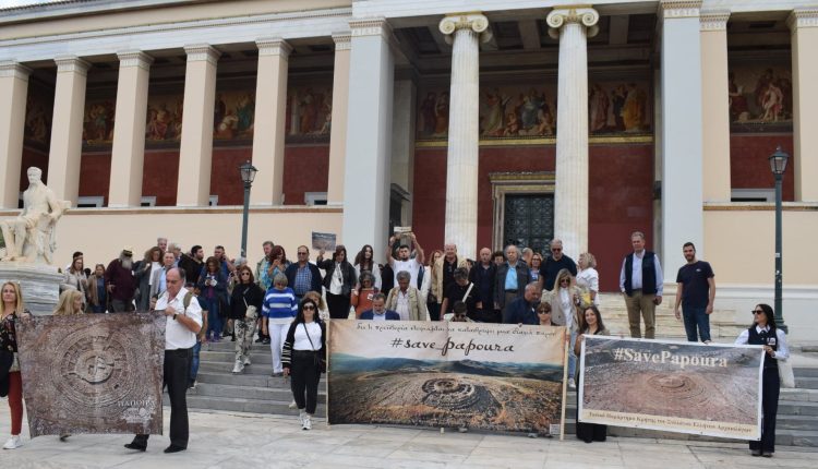 Ο Δήμαρχος κατήγγειλε την απόφαση για τοποθέτηση ραντάρ, ζήτησε την ακύρωσή της, την ανακήρυξη του λόφου ως αρχαιολογικού χώρου υψίστης σημασίας, την προστασία και ανάδειξή του. «Η Παπούρα θα παραμείνει ελεύθερη και ανέγγιχτη. Θα γίνει ζωντανό σημείο αναφοράς για τις επόμενες γενιές. Υπάρχουν λύσεις πιθανόν με μεγαλύτερο κόστος ή χρόνο. Σε κάθε περίπτωση, αυτή δεν είναι η μόνη, τεχνικά εφικτή λύση για το ραντάρ και σίγουρα για τον χρόνο εμείς δε φέρουμε καμία ευθύνη και δεν θα αποδεχτούμε μια λύση που «σφιχταγκαλιάζει» το μνημείο με την τοποθέτηση ραντάρ σε απόσταση αναπνοής από αυτό. Έχουμε χρέος να προστατεύσουμε το Μνημείο και να συνεχίσουμε τον αγώνα μας, σε συνεργασία με τους θεσμικούς και επιστημονικούς φορείς», κατέληξε, ευχαριστώντας τον κόσμο που βρέθηκε στο πλευρό του Δήμου και των Αρχαιολόγων.