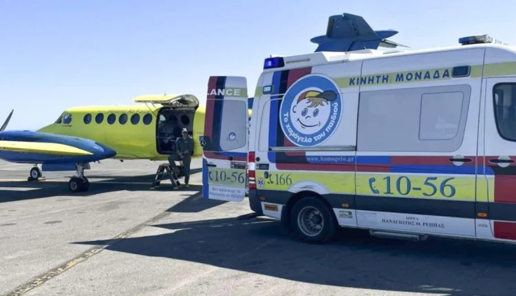 Αργά το βράδυ της Τρίτης αεροσκάφος του ΕΚΑΒ έφθασε στη Ρόδο από την Αττική και μετέφερε το κοριτσάκι στο αεροδρόμιο του Ηρακλείου.