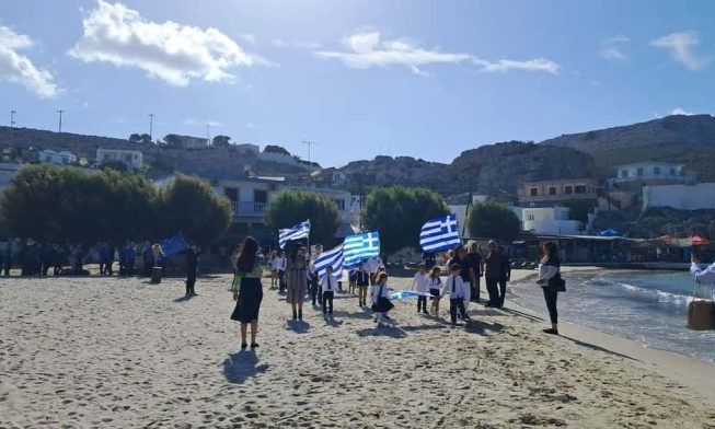 Η αμμώδης παραλία του μικρού νησιού μετατράπηκε σε έναν ζωντανό χώρο μνήμης και δόξας, εκεί όπου κυμάτισαν περήφανα οι γαλανόλευκες σημαίες στα χέρια των μαθητών και δασκάλων, μεταφέροντας σε κάθε γωνιά του Αιγαίου το διαχρονικό μήνυμα της ελευθερίας, της ενότητας και της πίστης στην πατρίδα.
