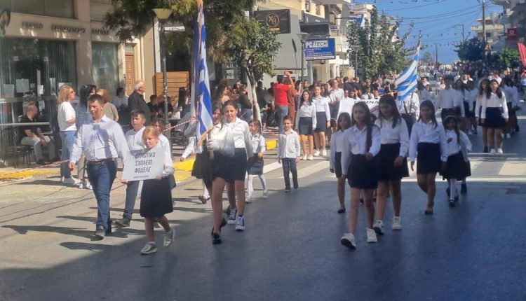 Χώρος συγκέντρωσης των μαθητών των Δημοτικών σχολείων, των Γυμνασίων και Λυκείων και στοίχισης των τμημάτων της παρέλασης ορίζεται η οδός Ελ. Βενιζέλου στο ύψος του Σούπερ Μάρκετ ΧΑΛΚΙΑΔΑΚΗΣ HOME.