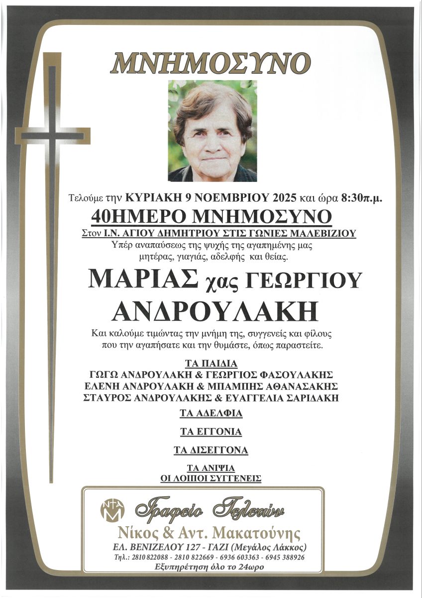 Στις Γωνιές το μνημόσυνο της Μαρίας Ανδρουλάκη την Κυριακή