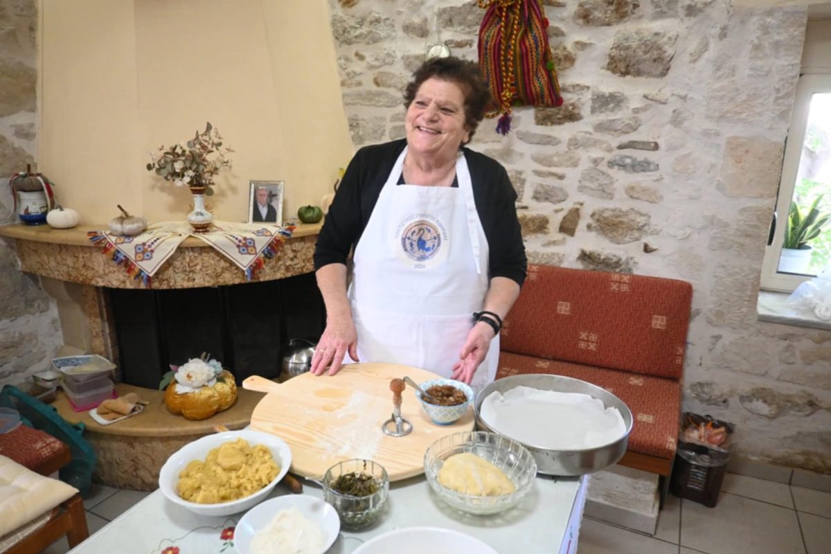 Τις λιχουδιές συμπλήρωσε η κυρία Μαρία Τσαφαντάκη η οποία με την ιδιαίτερη κρητική ντοπιολαλιά της, εξήγησε στην εκπομπή πως φτιάχνει τα λαχταριστά μηλοπιτάκια εποχής με σταφίδα, μέλι και καρύδι, αλλά και τις ανεβατές χορτόπιτες με 32 διαφορετικά εδώδιμα χόρτα και με παραδοσιακό προζύμι που συνεχίζει να «αναπιάνει», όπως έκαναν οι παλαιές νοικοκυρές στην Κρήτη.