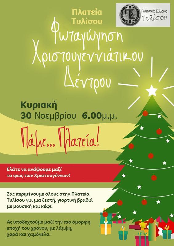 Share FacebookTwitter Σας περιμένουμε όλους μικρούς και μεγάλους να περάσουμε μια υπέροχη χριστουγεννιάτικη βραδια!!!!!! Πολιτιστικός Σύλλογος-Τυλίσου ΤΥΛΙΣΟΣφωταγώγησηχριστουγεννιάτικο δέντρο Share FacebookTwitter
