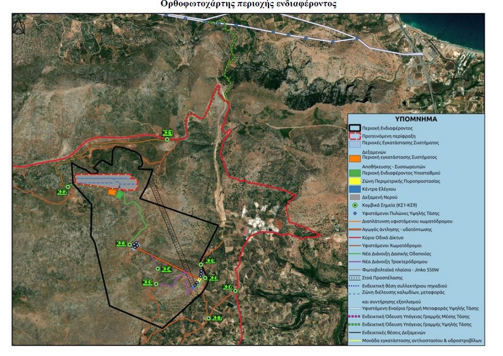 Για τις ανάγκες του έργου όπως σημειώνει το Γεωπάρκο Ψηλορείτη, δεσμεύεται μια έκταση περίπου 3,5 Km2 από το οροπέδιο του Στρούμπουλα μέχρι τις παρυφές της Τυλίσου, ενώ ο ΦΒ σταθμός απαιτεί έκταση 188.000 m2. Θα χρειαστεί η διάνοιξη-βελτίωση του δρόμου πρόσβασης από το οροπέδιο του Στρούμπουλα στη θέση Πύργος, η υπόγεια διασύνδεση του σταθμού μέσω του οροπεδίου με το σύστημα Μέσης Τάσης, πλατείες και άλλες υποστηρικτικές κατασκευές και επεμβάσεις.