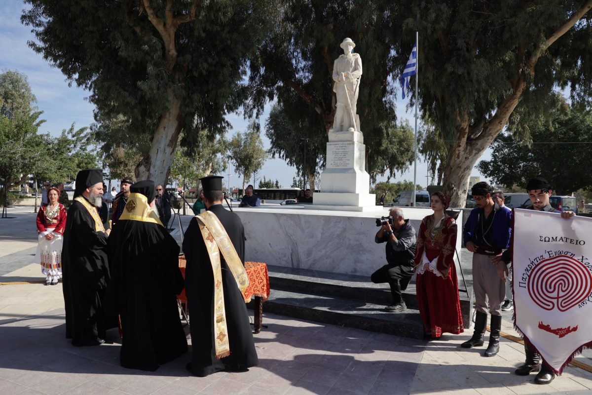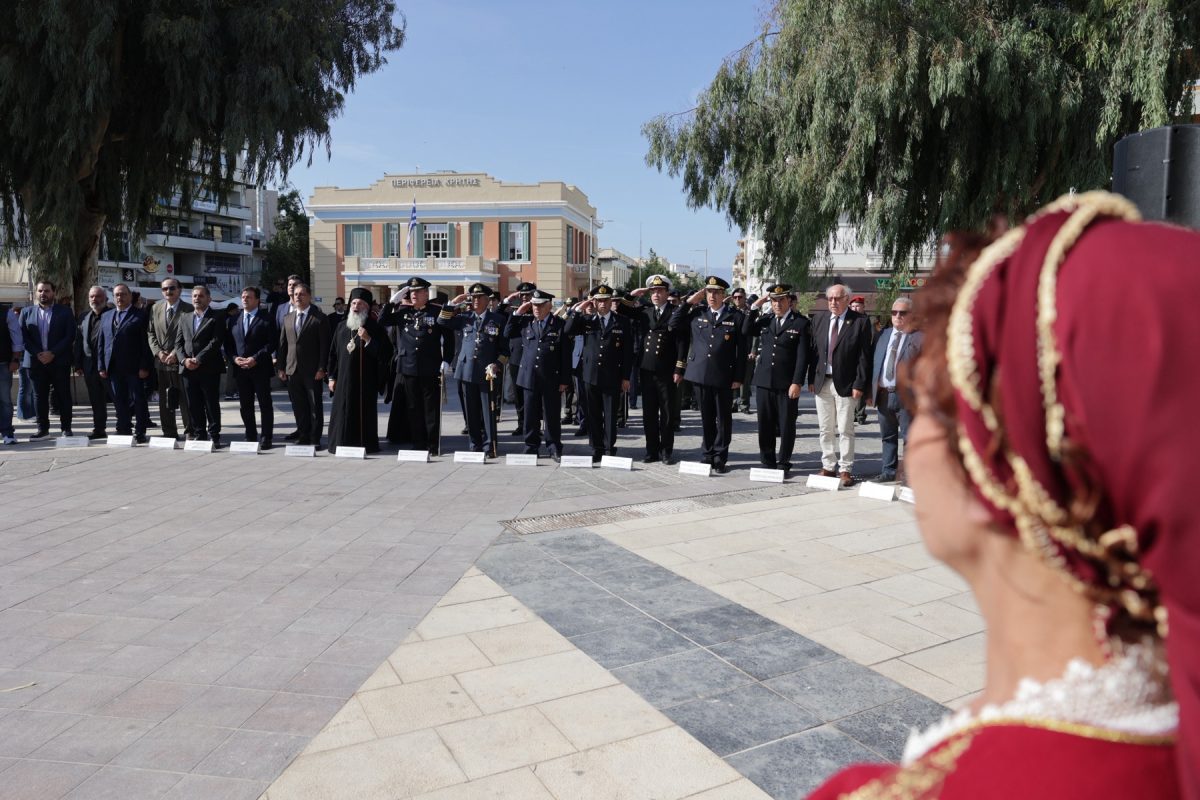 Νωρίτερα στον Ιερό Μητροπολιτικό Ναό του Αγ. Μηνά τελέστηκε επίσημη Δοξολογία και έγινε ομιλία για τον σημερινό εορτασμό από αξιωματικό των Ενόπλων Δυνάμεων της Φρουράς Ηρακλείου.