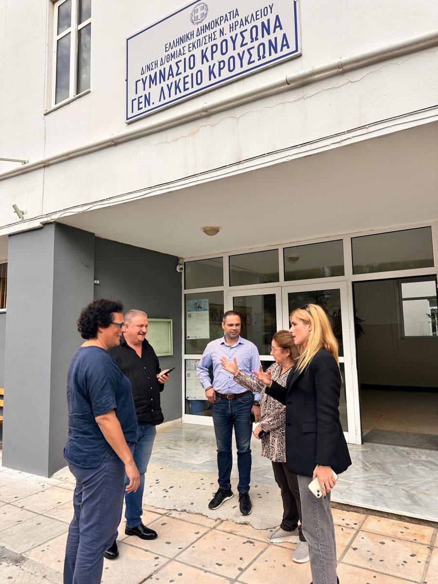 Στον Κρουσώνα βρέθηκαν οι Αντιδήμαρχοι Παιδείας Μαρίνα Βογιατζή, Τεχνικών Έργων Άρης Σαλούστρος και Οικονομικών Βαγγέλης Παρασύρης, οι οποίοι συναντήθηκαν με διευθυντές σχολείων. Οι εκπαιδευτικοί εξήραν την άριστη συνεργασία με τον Δήμο και την άμεση ανταπόκριση στα αιτήματά τους, επισημαίνοντας ότι οι παρεμβάσεις αυτές συμβάλλουν ουσιαστικά στη βελτίωση της σχολικής καθημερινότητας και της ασφάλειας των μαθητών