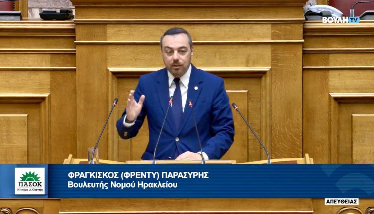 Για έναν «παρεοκρατικό βαλκανικό καπιταλισμό» με την ακρίβεια να κατατρώει τα εισοδήματα των Ελλήνων, τον πληθωρισμό στα τρόφιμα να είναι πάνω από 35% τα τελευταία τρία χρόνια ποσοστό που ξεπερνάει κατά 50% τον Ευρωπαϊκό μέσο όρο, με την τιμή ρεύματος 51% ακριβότερη σήμερα σε σχέση με το 2019 και με 3,5 δισεκατομμύρια τα κέρδη των Τραπεζών, , έκανε λόγο ο Φραγκίσκος Παρασύρης, Βουλευτής Ηρακλείου του ΠΑΣΟΚ-Κινήματος Αλλαγής στην Ολομέλεια της Βουλής κατά τη συζήτηση του νομοσχεδίου για την Ανεξάρτητη Αρχή Καταναλωτή.