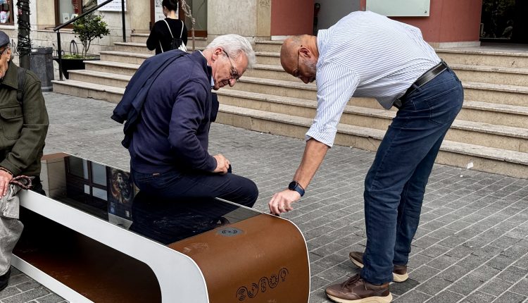 Μερικά από τα νέα έξυπνα ηλιακά παγκάκια που έχουν εγκατασταθεί στο Ηράκλειο είδε από κοντά ο Δήμαρχος Ηρακλείου Αλέξης Καλοκαιρινός μαζί με τον Αντιδήμαρχο Αναπτυξιακού Προγραμματισμού & Ψηφιακού Μετασχηματισμού Τάσο Τσατσάκη το πρωί της Τετάρτης 3/12.