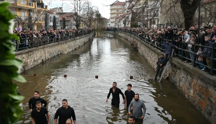Μόλις ο Μητροπολίτης Φλωρίνης, Πρεσπών και Εορδαίας κ.κ. Ειρηναίος έριξε τον Σταυρό στον ποταμό Σακουλέβα ο κολυμβητές άρχισαν να σπρώχνονται και να καυγαδίζουν μέσα στα παγωμένα νερά για το ποιος τελικά τον έπιασε.