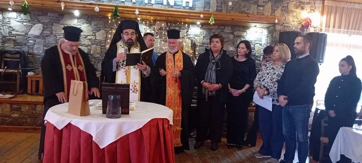 Η ευλόγηση της πίτας πραγματοποιήθηκε από τον Ιεροκήρυκα της Ιεράς Αρχιεπισκοπής, Πανοσιολογιότατο Αρχιμανδρίτη κο Δημήτριο Πολιτάκη.