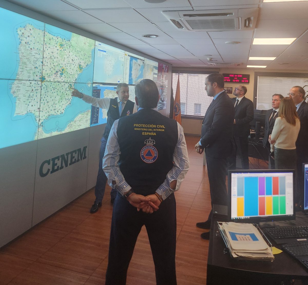 Επιπλέον, ο Υπουργός επισκέφθηκε τη Γενική Διεύθυνση Πολιτικής Προστασίας και Έκτακτων Αναγκών της Ισπανίας, όπου πραγματοποιήθηκε αναλυτική παρουσίαση του Ισπανικού Εθνικού Συστήματος Πολιτικής Προστασίας, της Υποδιεύθυνσης Πρόληψης, Σχεδιασμού και Διαχείρισης Εκτάκτων Αναγκών, καθώς και του Εθνικού Κέντρου Παρακολούθησης και Συντονισμού Εκτάκτων Αναγκών.