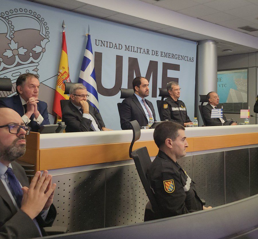 Τέλος, ο κ. Κεφαλογιάννης επισκέφθηκε τις εγκαταστάσεις της UME (Unidad Militar de Emergencias) στην αεροπορική βάση Torrejón, όπου συναντήθηκε με τον Επικεφαλής της UME, Αντιστράτηγο Francisco Javier Marcos Izquierdo και ενημερώθηκε για την οργάνωση, τη λειτουργία και τη διαδικασία ενεργοποίησης της Μονάδας.