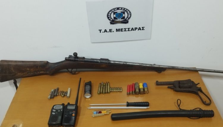 Στη σύλληψη ενός 64χρονου ημεδαπού προχώρησαν χθες (14/02/2026) αστυνομικοί του Τμήματος Αστυνομικών Επιχειρήσεων Μεσσαράς, στο πλαίσιο ερευνών σε περιοχή του Δήμου Φαιστού, με τον άνδρα να κατηγορείται για παραβάσεις της νομοθεσίας περί όπλων και ηλεκτρονικών επικοινωνιών, έπειτα από τον εντοπισμό και την κατάσχεση οπλισμού και συναφούς εξοπλισμού.